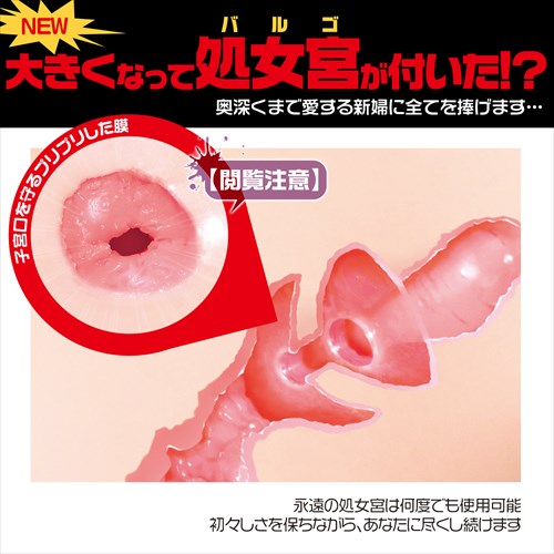 繼承純潔注意嘅特有處女膜(可不斷重複使用),加大版肉厚倍增,由450g變成900g,手持及置床都可以,問你點頂! 同上代一樣,刺激點主要喺頭斷超緊窄處女膜位,及後則可慢慢細嘗其肉厚感,可謂剛柔並濟。 (日文本名: 【純潔注意】すじまん くぱぁ ろりんこ 処女宮~バルゴ~)