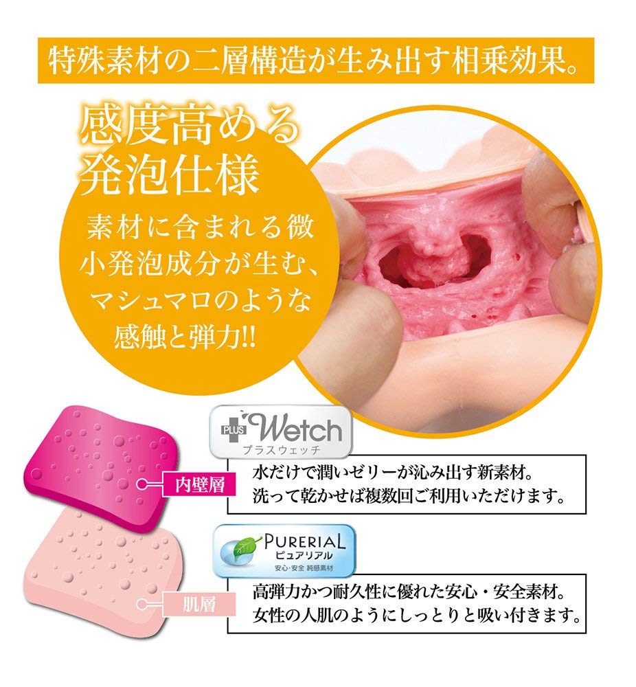 彩美旬果胴體完美複製!材料全部用上MEN’S MAX 引以為傲的素材。表層為PURERIAL素材,擁有極強的拉伸性,耐久性,無油無臭,少女皮膚的順滑質感終實呈現。添加清水就能自然流出潤滑油,而且內部結構還設有大型G點,刺激十足
