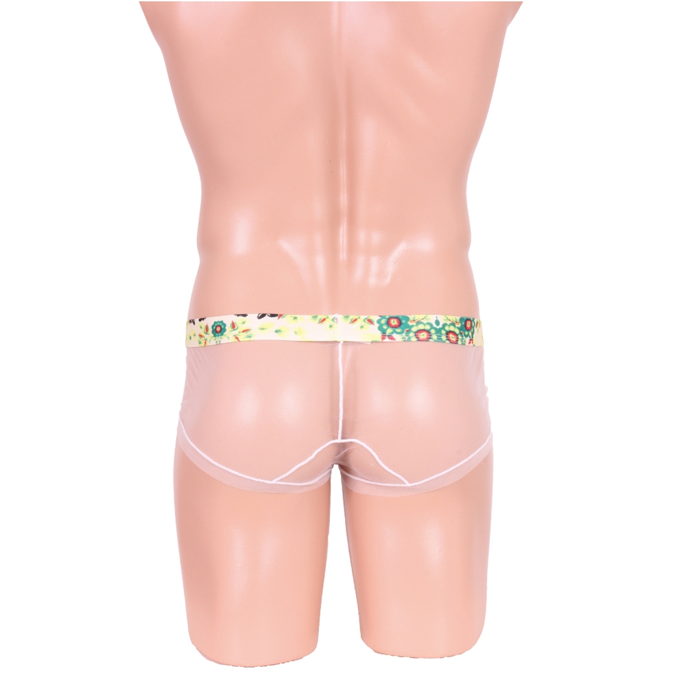 在透明彈力網上, 印有花卉圖案。