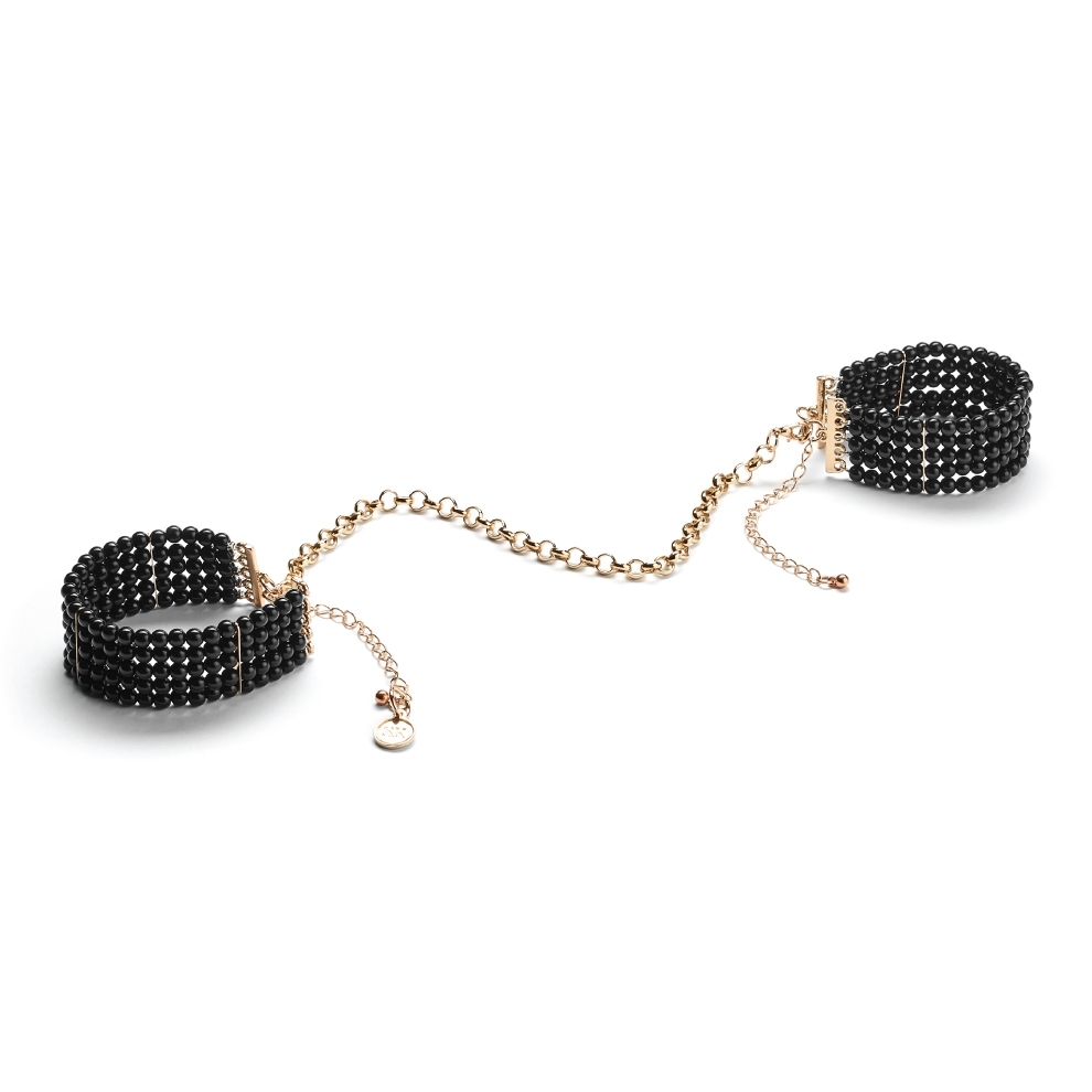 英國品牌Secret Kisses 的束縛配飾將經典的 BDSM 用品改頭換面,以優雅迷人的設計呈獻於您眼前。日間穿戴能夠令服裝打扮更有個性,夜晚穿戴便能令枕邊遊戲倍添激情,將功能及時尚完美融合於一身。Secret Kisses Mystic Onyx Cuffs以黝黑的圓珠串連而成,無論當作耀目手鏈單獨穿戴,或將其以鐵鏈連結一起當作手銬使用,突顯個人風格,既時尚又實用。