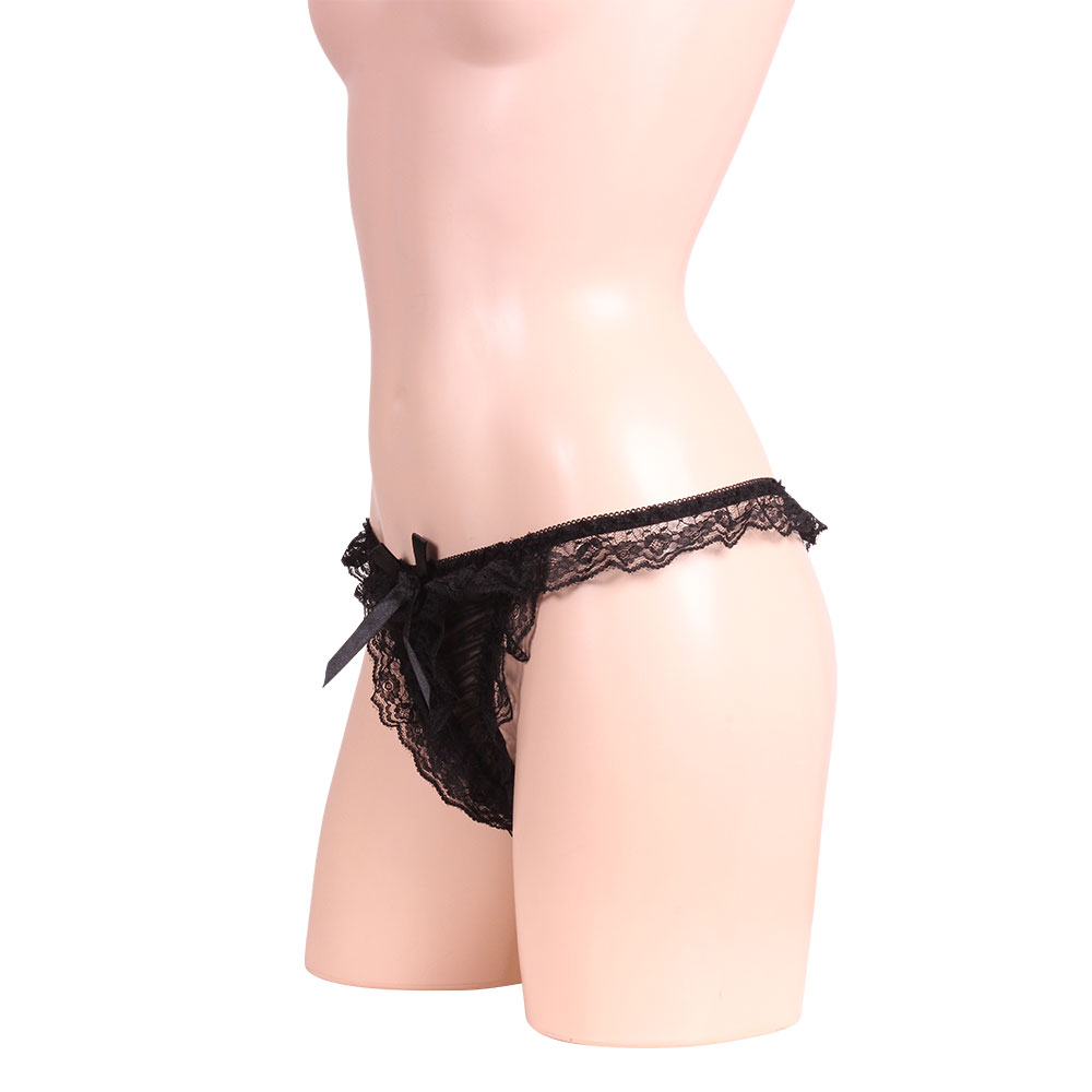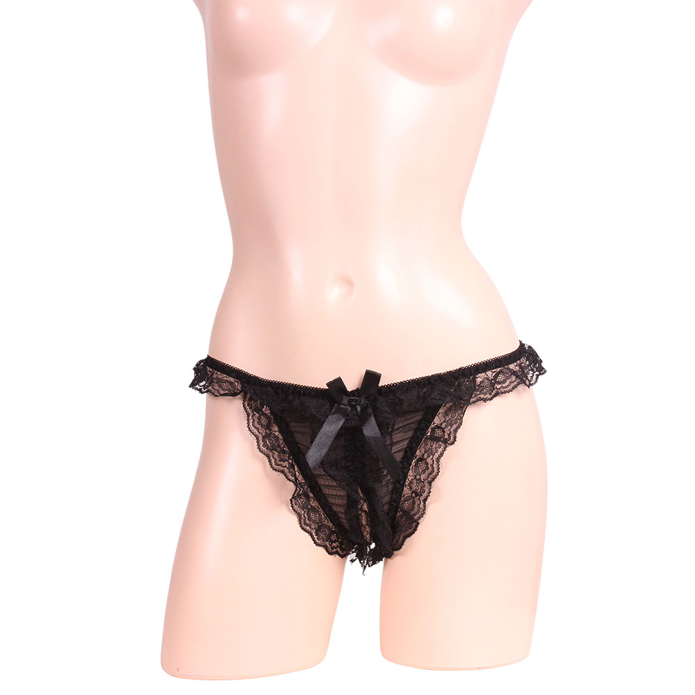 蕾絲蝴蝶結開洞內褲 黑色