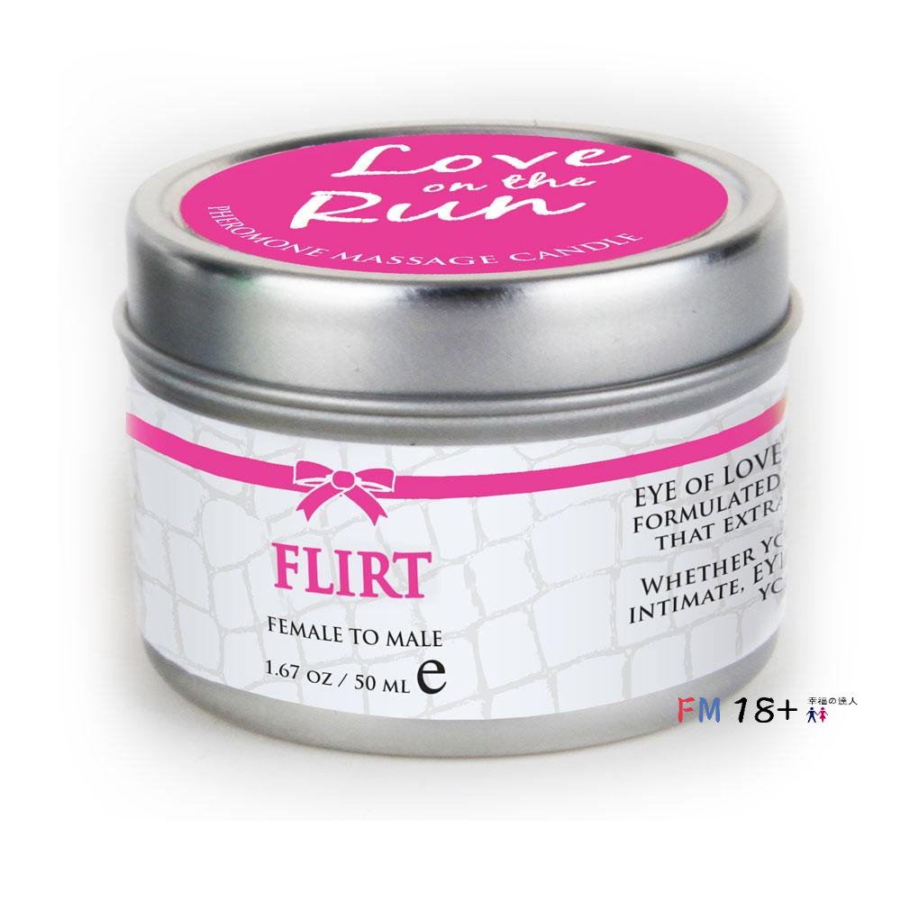 Flirt是女士吸引異性專用的費洛蒙按摩油蠟燭。以情熱的雲尼拿香草、蘋果、香桃及萬壽菊調配而成。撩人的茉莉花、檀香及苔蘚雪松香氣縈繞在空氣中, 他再也按捺不住了!