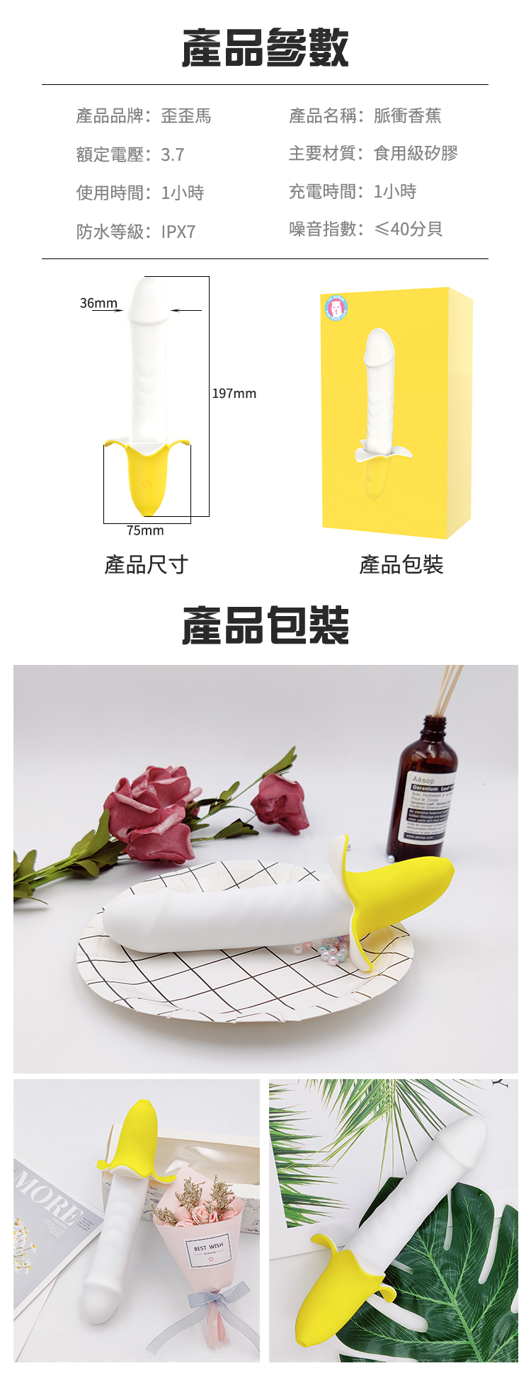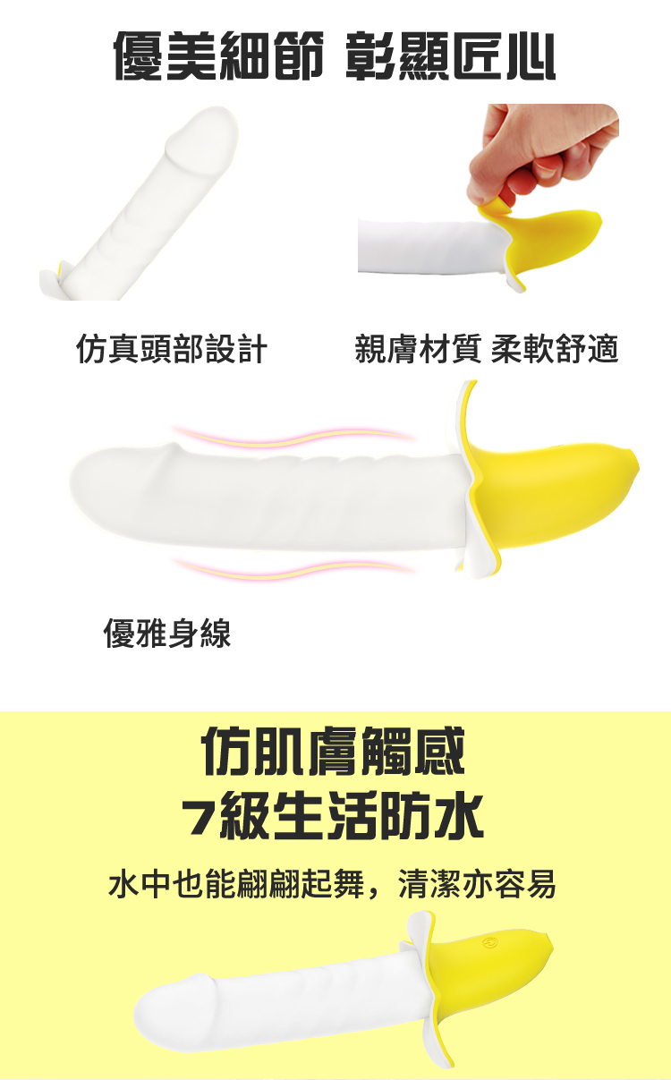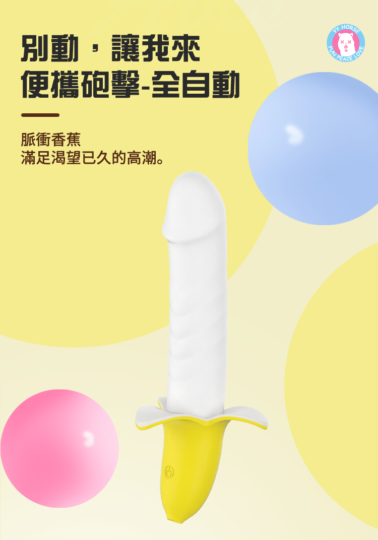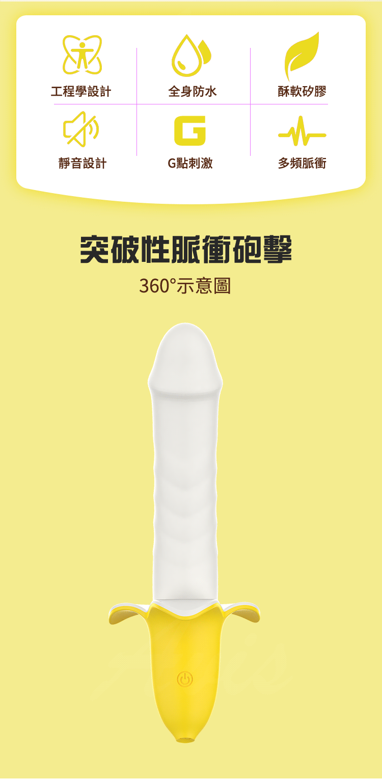 繼蕉男友後最新版香蕉 自動抽插版。抽插力強,不斷撞擊你的深處!其矽膠材質,清洗容易。靜音。防水設計 8種不同脈衝模式,長按三秒開機,短按切換八種脈沖模式,長按三秒關機。